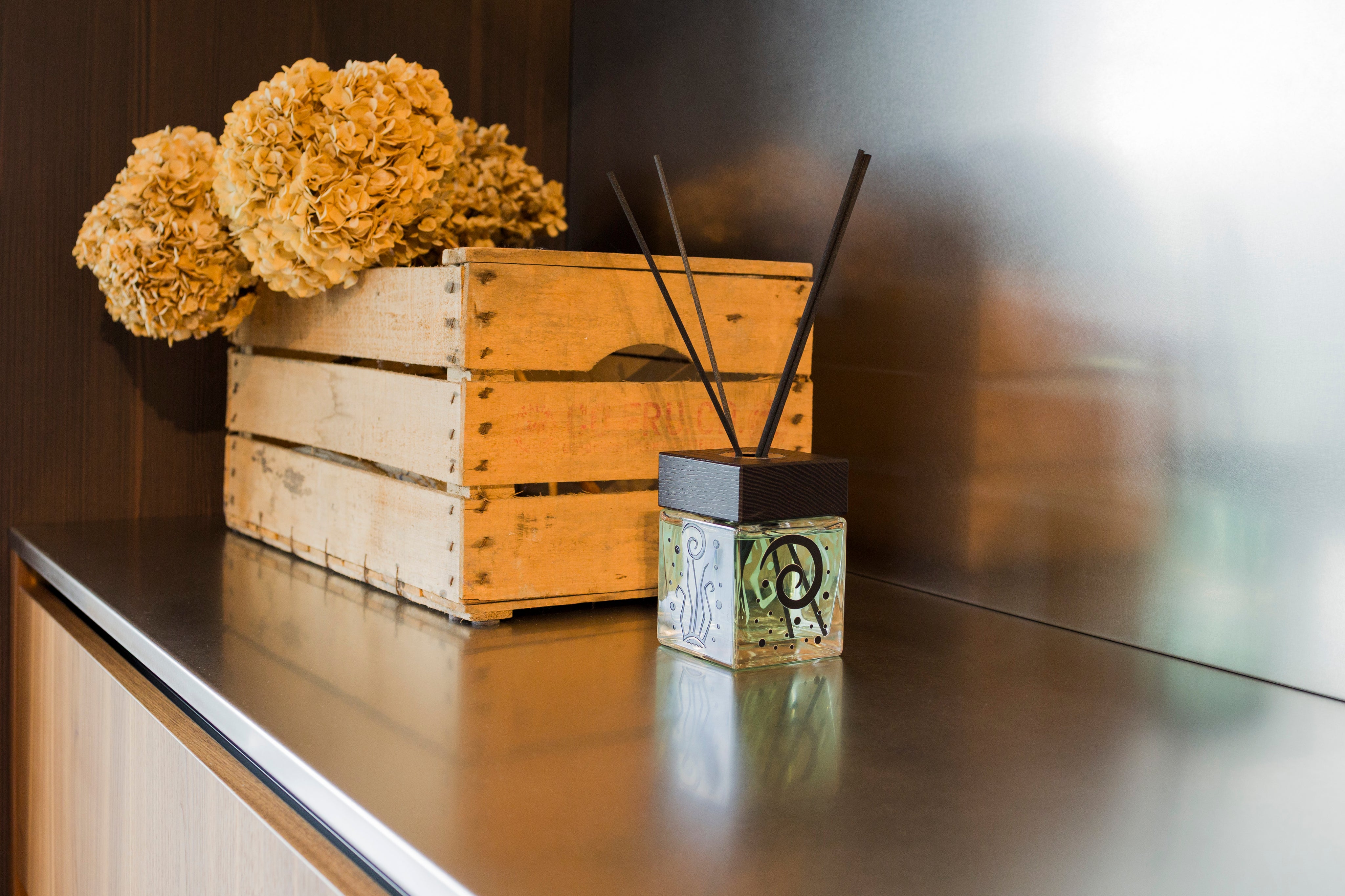 Un’opera che interpreta, in chiave astratta, la forza creatrice e armoniosa della natura. Le tre immagini che accompagnano il diffusore rappresentano la visione personale dell’artista: una Madre Natura che unisce cielo, sole e terra in un unico abbraccio simbolico.